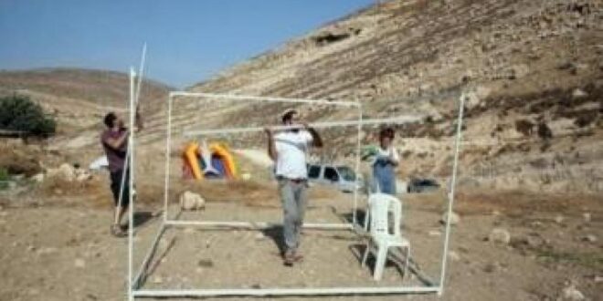 نصب مستوطنون، يوم السبت، خيامًا في أراضي عصيرة القبلية جنوب نابلس شمالي الضفة الغربية المحتلة.