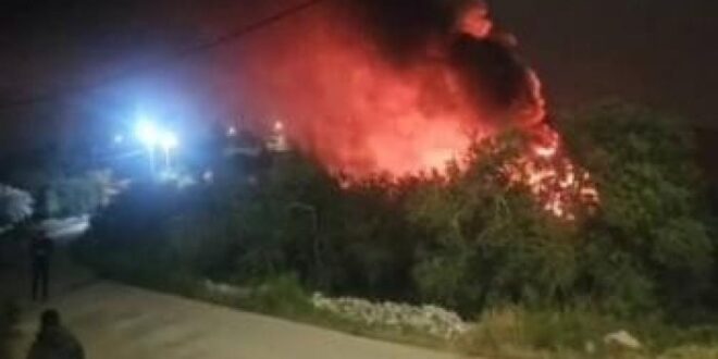 مستوطنون يحرقون بركسًا في دير دبوان شرق رام الله