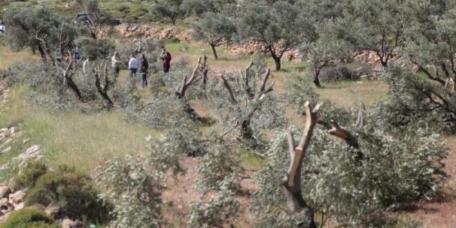 قطع مستوطنون متطرفون، الليلة الماضية، نحو 120 شجرة زيتون في سهل “مرج سيع” الواقع بين قريتي المغير وأبو فلاح شمال شرق رام الله بالضفة الغربية المحتلة.
