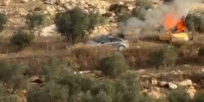 هاجمت قوات الاحتلال الإسرائيلي ومستوطنون، يوم الأحد، قاطفي الزيتون في بلدة ترمسعيا شمال شرق رام الله وأضرمت النار في مركبتين وأشجار الزيتون التي تسببت بخسائر مادية كبيرة للمزارعين وأصحاب المركبات، خاصة مع بداية موسم الزيتون الذي يشكل مصدر رزق أساسي للأهالي.