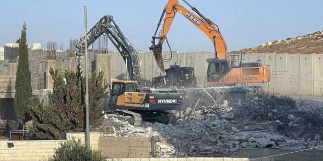 هدمت آليات الاحتلال، صباح اليوم الثلاثاء، أسوارًا وجرفت أساسات تعود لصالة أفراح كانت قد هُدمت قسرًا في وقت سابق، وذلك في بلدة الجديرة شمال غرب القدس المحتلة.